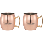 4-in-1 gift set inspired by the popular Moscow Mule cocktail. Includes 2 mule mugs, 1 bar spoon and 1 measuring jigger. Stainless steel construction with copper coating. Gift box features a robust history of the cocktail and a recipe card is included. Each mug is 14oz. 0.65oz/1.35oz jigger.