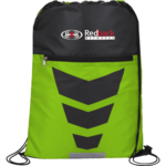 The Courtside Drawstring Bag has a large open main compartment to hold all of your gym or sport gear. Featuring a zippered front pocket and a cinching closure it has stylish graphic and reflective detail.
