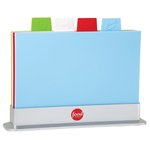 Sturdy plastic stand contains four different colored Polypropylene cutting boards.
